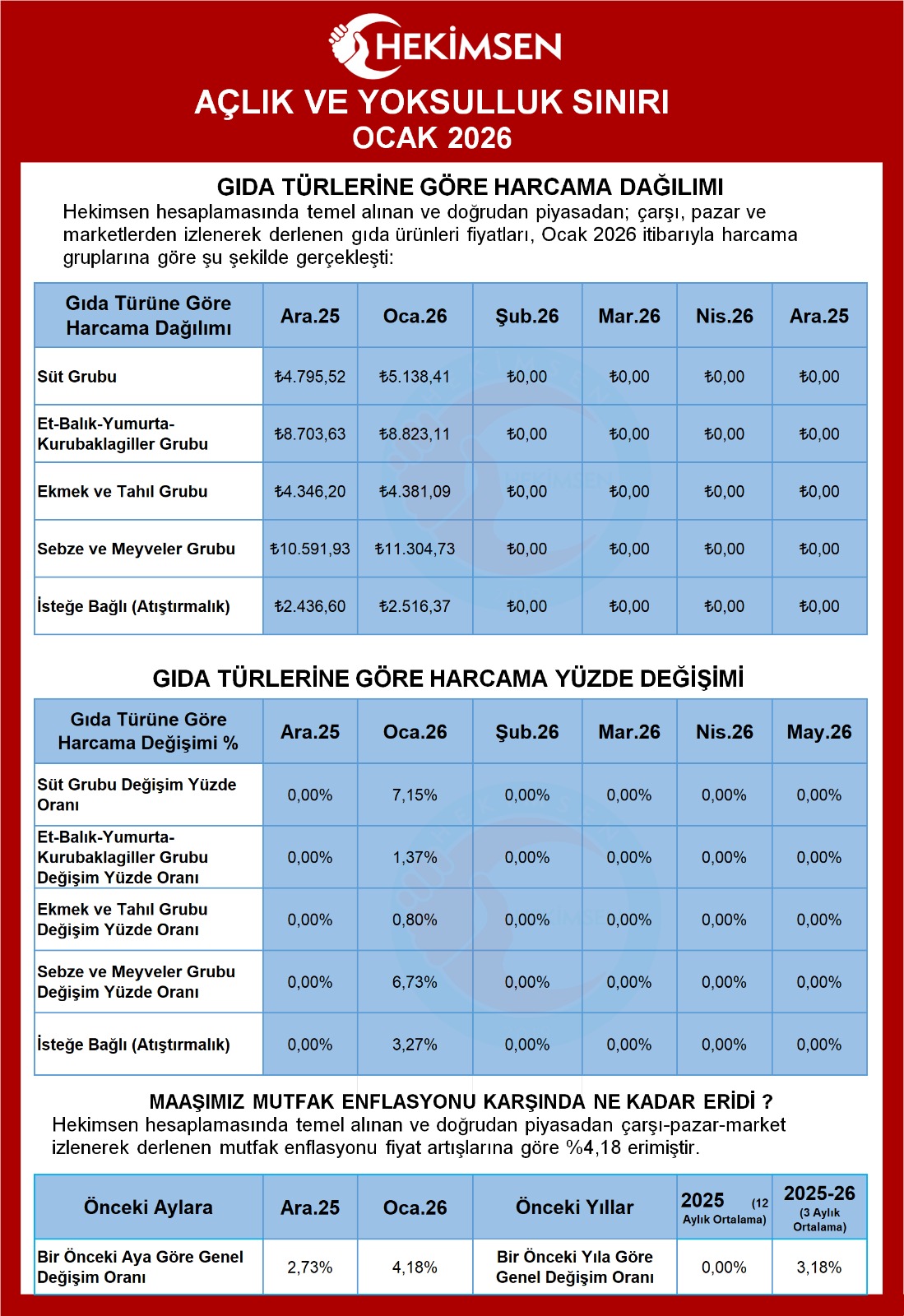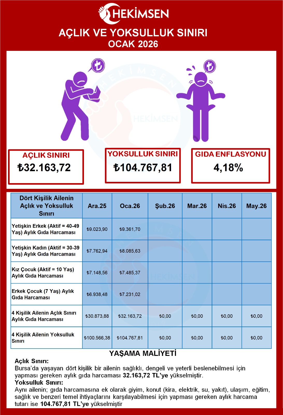 Hekimsen olarak; ücret politikalarının, vergi düzenlemelerinin ve sosyal destek mekanizmalarının açlık ve yoksulluk sınırı verileri dikkate alınarak yeniden düzenlenmesi gerektiğini bir kez daha vurguluyoruz.